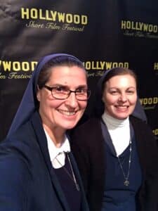 I didn’t expect to be present at an event for talented and up-and-coming filmmakers in Santa Monica, since I am a film reviewer not necessarily a filmmaker. However, I received an email from one of our Sisters in Poland asking if we could represent one of our Pauline brothers from the Society of St. Paul in Poland at this annual short film festival. His film, Three in One, was selected to be screened at this festival. Since Sr. Helena Burns was in town for a film shoot on her Theology of the Body and the Media online class, she came along.