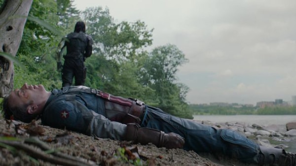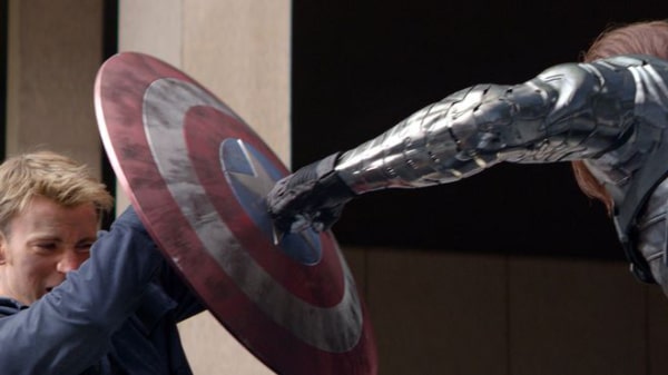 The Scene: Bucky is coming after Steve. Steve throws down his shield, refusing to fight or kill this friend he treasures, and Bucky jumps on the chance to finish his mission to destroy Captain America. But just as he’s about to throw a final crippling punch, Steve repeats to him an old line the two of them shared as a promise long ago. Bucky stops, frozen. And when Steve falls from their fighting-ground into the water, Bucky pulls him out and saves him.