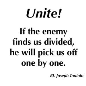 In his day, the Founder of the Pauline Family, Blessed James Alberione, bemoaned the many powerful voices in the world of media who “put up teaching chairs opposed to that of Jesus Christ,” amplifying their erroneous and harmful teachings through powerful forms of communication. Alberione still remembered attending, as a teen, an important Catholic Congress in the year 1900. It was a significant era: Pope Leo XIII was reigning and had urged Catholics to seriously engage the culture and the pivotal social issues of the day. Brilliant minds took up the Pope’s challenge. One of them was the economist Joseph Toniolo (now Blessed), one of the speakers at that turn of the century Congress. Decades later, Alberione remembered Toniolo’s ringing cry: “Unite! If the enemy finds us divided, he will pick us off, one by one.”